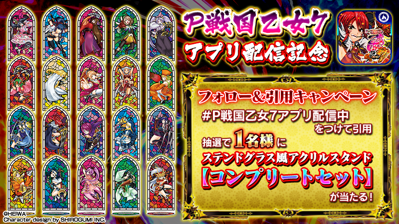 2.キャンペーン対象ポストに「#P戦国乙女7アプリ配信中」を付けて引用